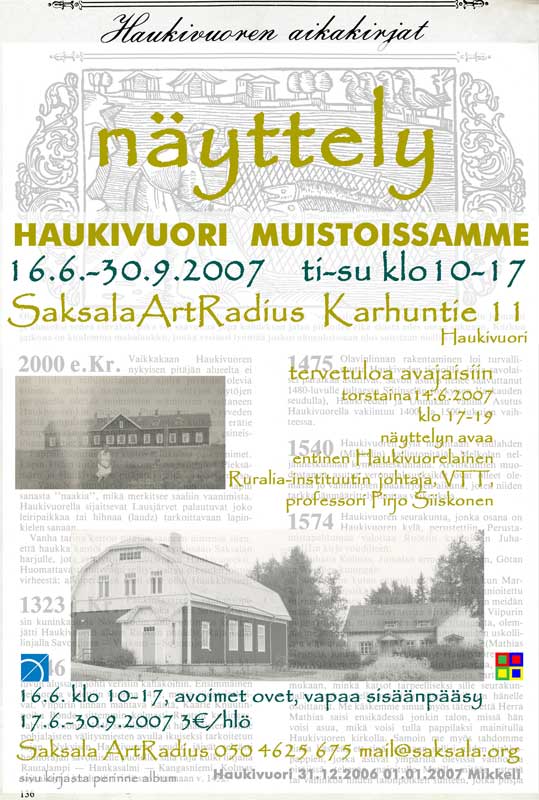 HAUKIVUORI MUISTOISSAMME I in 2007 was based on the overview in PERINNE ALBUMI and photos, documentation, flyers and objects from local organizations and people.