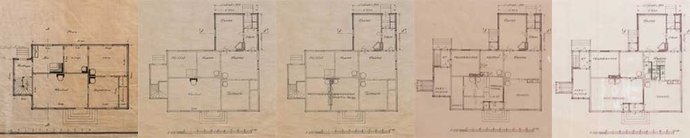 floor plan of Hiirola station in 1889 - 1934 - 1952 - 1980 - 1987 -