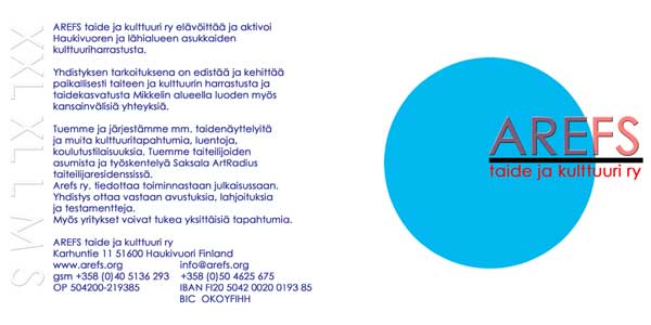 In August 2008 AREFS taide ja kulttuuri ry has been official registered under